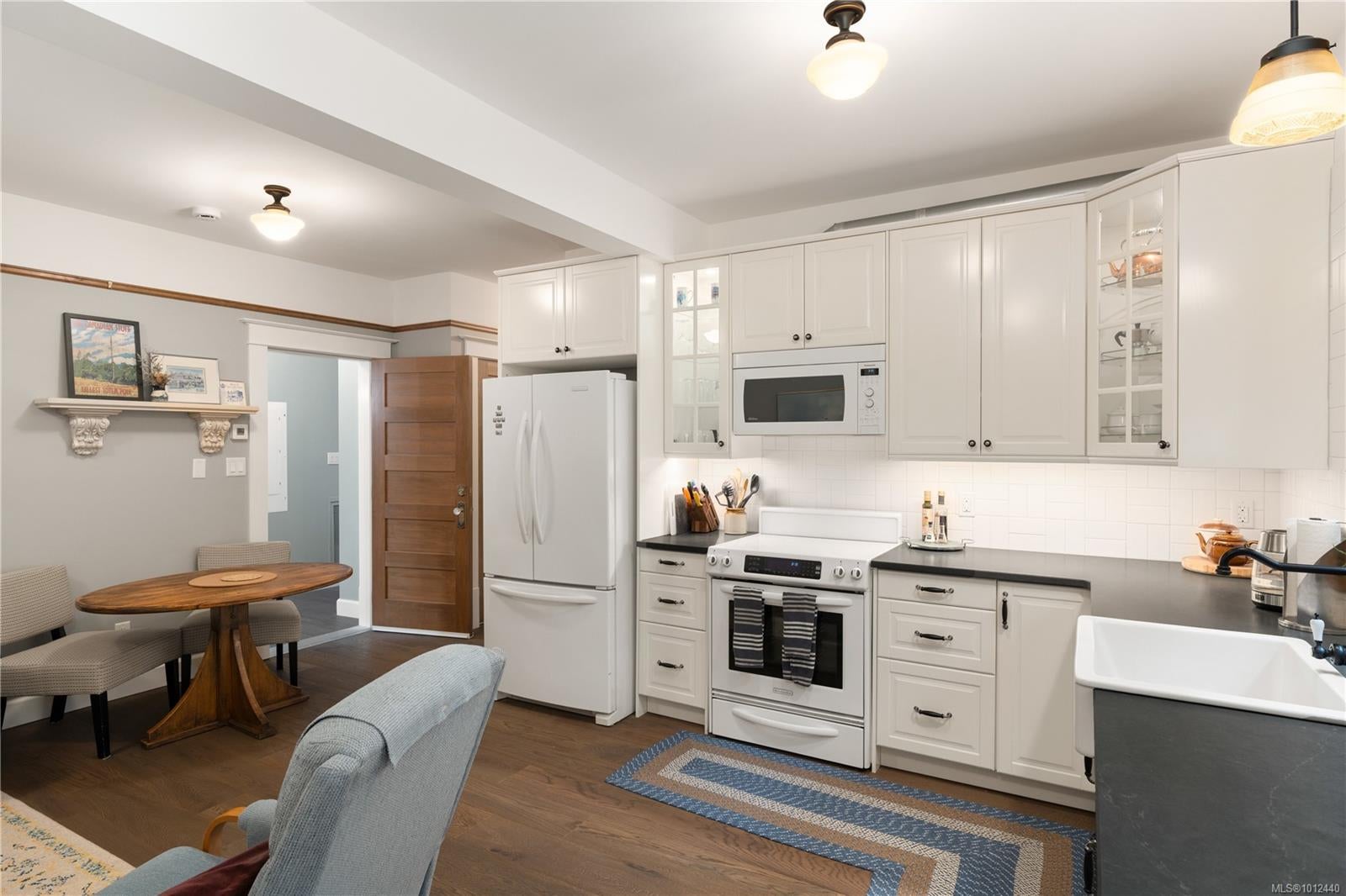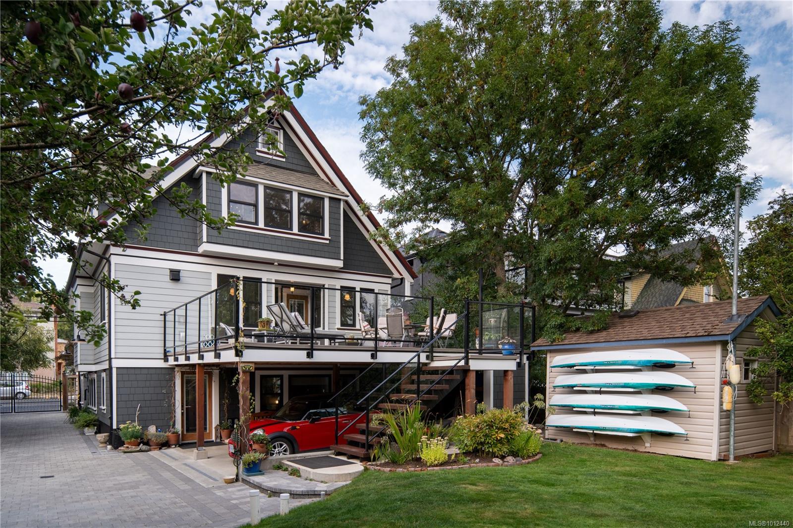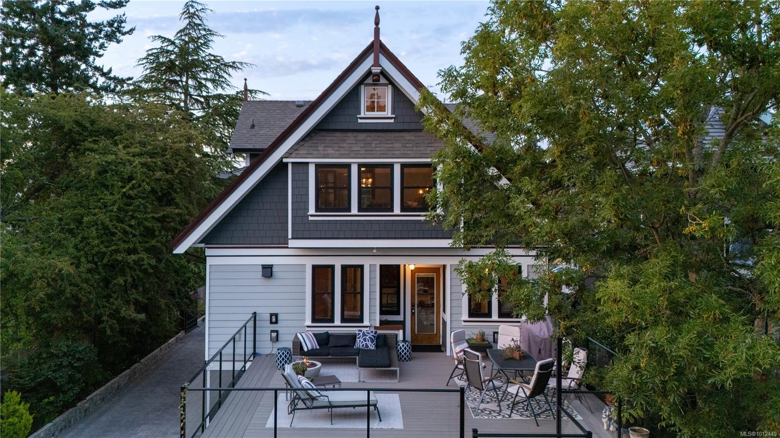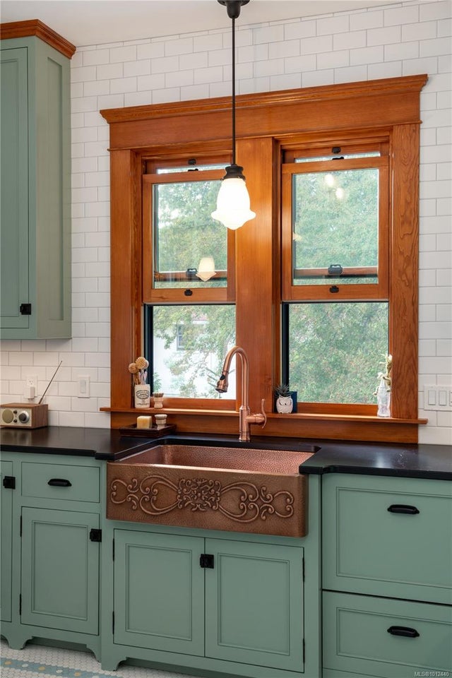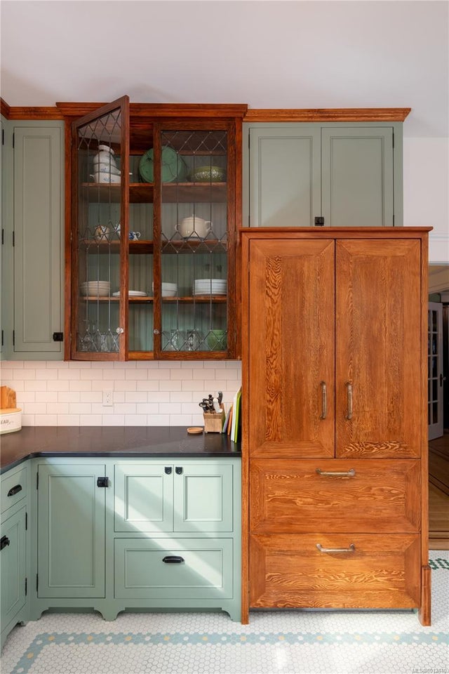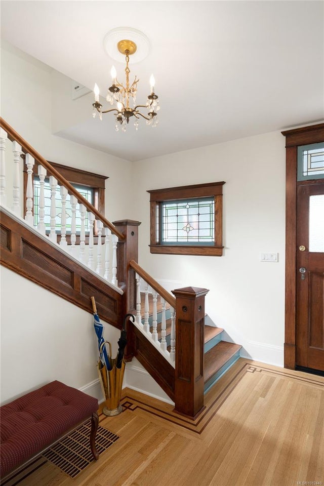 Grande Dame of Fairfield. Elegantly dressed and impeccably well appointed, this Victorian home has been extensively and lovingly restored by the current owners. No expense was spared, with an exhaustive list of updates completed since 2018, including lifting the home to create an over-height lower level on all new foundations. Beyond the hedgerow & front gate, a large porch creates an inviting entrance. The front parlour room opens onto a formal living room with stained glass windows and focal natural gas fireplace. Flair for design is evident in the custom gourmet kitchen adorned with maple & fir cabinetry with heritage latches, Fisher & Paykel appliances, copper apron sink, soapstone countertops, custom mosaic tile, antique banquette, and adjoining butler's pantry with antique leaded cabinetry. Step onto the entertainment-sized deck and enjoy the level, south-facing backyard. The upper floor boasts a huge primary retreat with ceilings vaulting to 12'6", ensuite bathroom and ample closet space, plus two more generous bedrooms and a second bathroom. The lower level boasts 8'10" ceilings, with a legal 2-bedroom suite, media/flex room & hobby area with access to a double carport. Restored to its original design, the exterior was reclad with durable 'Hardie' siding/shingles and extensive fir trim, all colour-matched to the home's original colour palette. Antique fixtures were painstakingly sourced from across the pacific northwest, including lighting, stained glass, bathroom vanities, and cabinetry. A quiet location with a walk score of 90, just a short stroll to the Moss Street market, Dallas Road or Cook Street Village. A flawless offering.