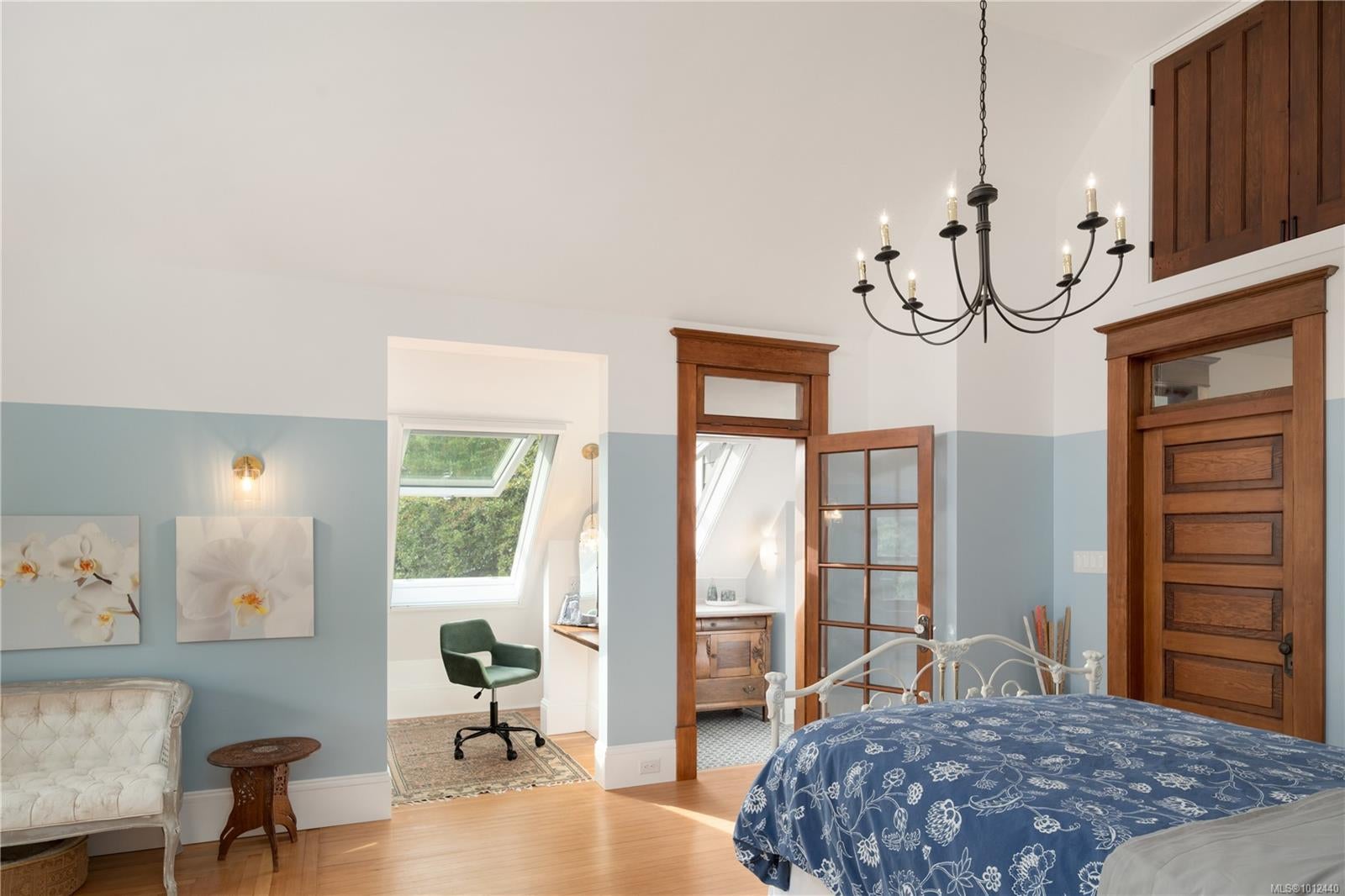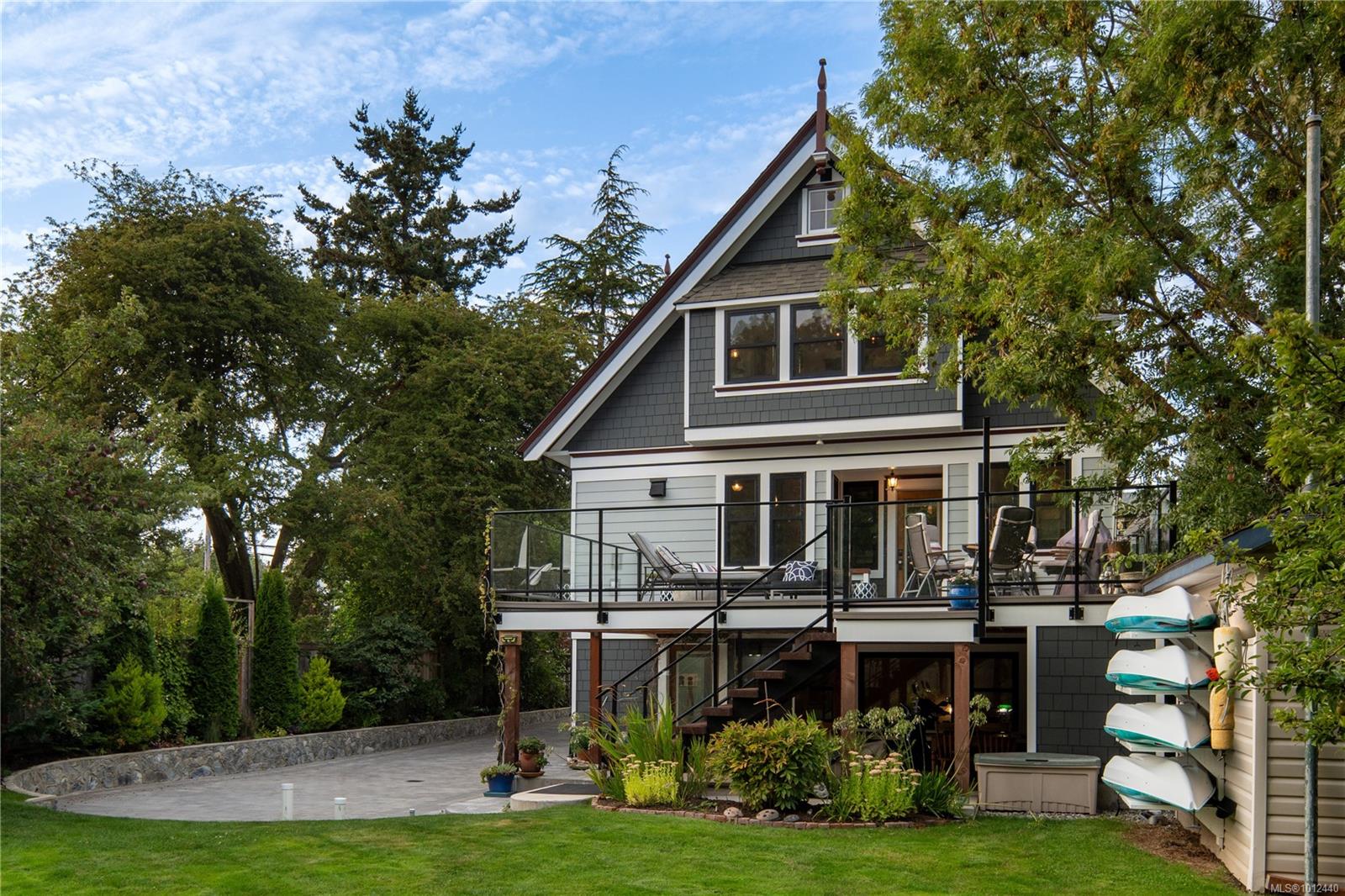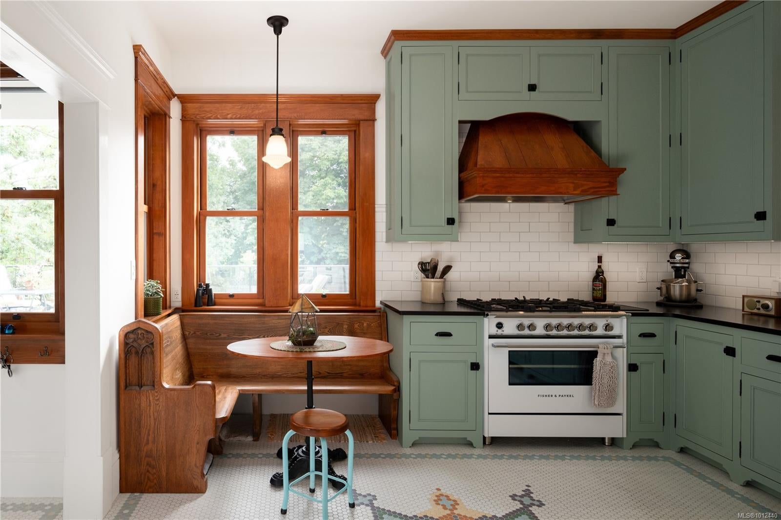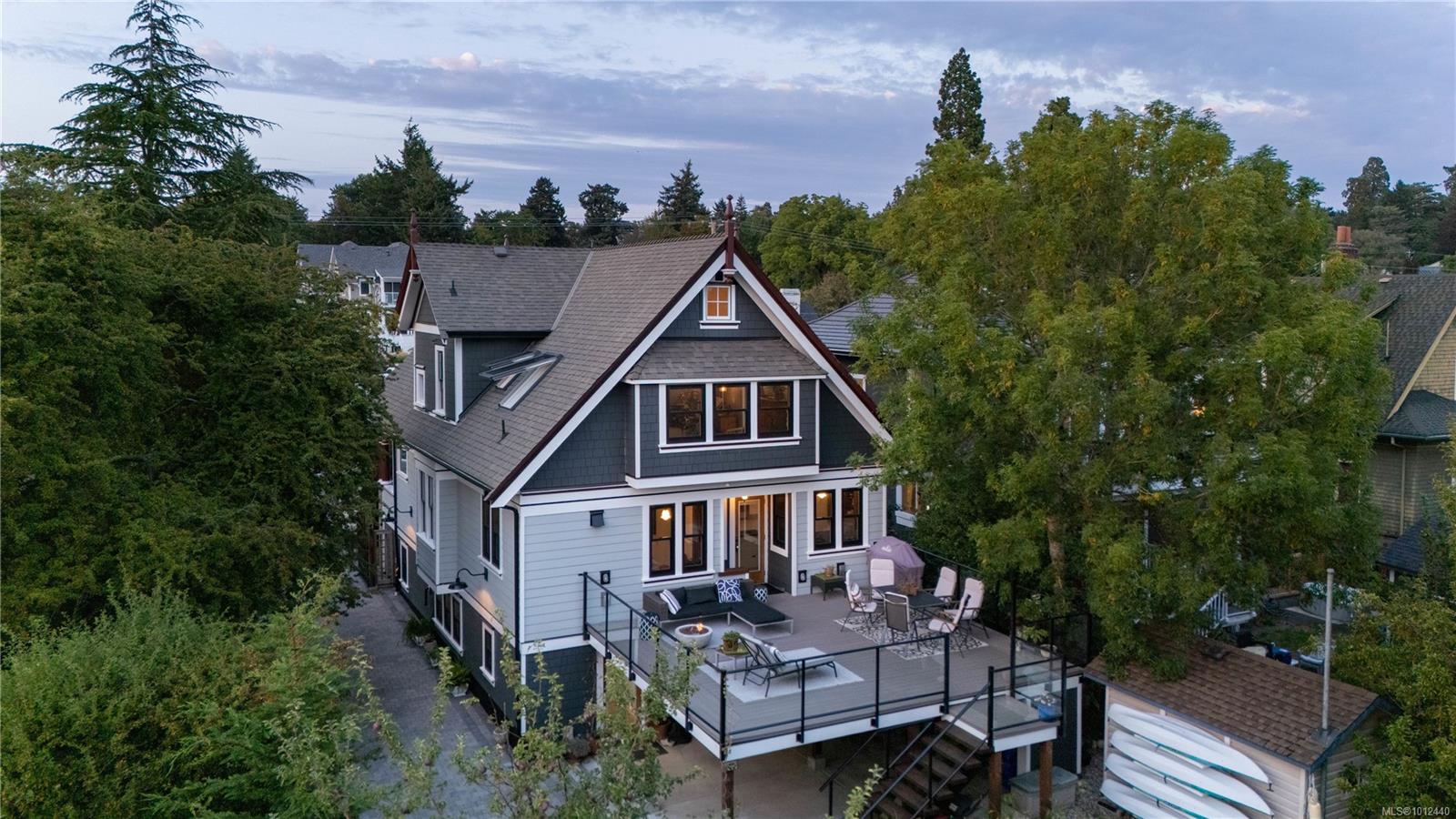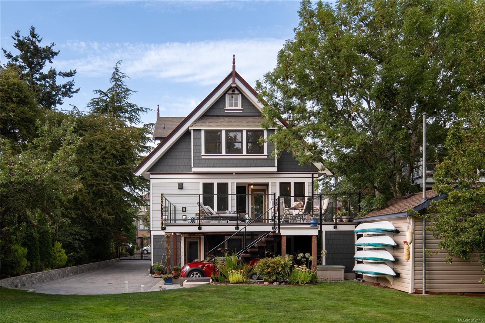 Grande Dame of Fairfield. Elegantly dressed and impeccably well appointed, this Victorian home has been extensively and lovingly restored by the current owners. No expense was spared, with an exhaustive list of updates completed since 2018, including lifting the home to create an over-height lower level on all new foundations. Beyond the hedgerow & front gate, a large porch creates an inviting entrance. The front parlour room opens onto a formal living room with stained glass windows and focal natural gas fireplace. Flair for design is evident in the custom gourmet kitchen adorned with maple & fir cabinetry with heritage latches, Fisher & Paykel appliances, copper apron sink, soapstone countertops, custom mosaic tile, antique banquette, and adjoining butler's pantry with antique leaded cabinetry. Step onto the entertainment-sized deck and enjoy the level, south-facing backyard. The upper floor boasts a huge primary retreat with ceilings vaulting to 12'6", ensuite bathroom and ample closet space, plus two more generous bedrooms and a second bathroom. The lower level boasts 8'10" ceilings, with a legal 2-bedroom suite, media/flex room & hobby area with access to a double carport. Restored to its original design, the exterior was reclad with durable 'Hardie' siding/shingles and extensive fir trim, all colour-matched to the home's original colour palette. Antique fixtures were painstakingly sourced from across the pacific northwest, including lighting, stained glass, bathroom vanities, and cabinetry. A quiet location with a walk score of 90, just a short stroll to the Moss Street market, Dallas Road or Cook Street Village. A flawless offering.