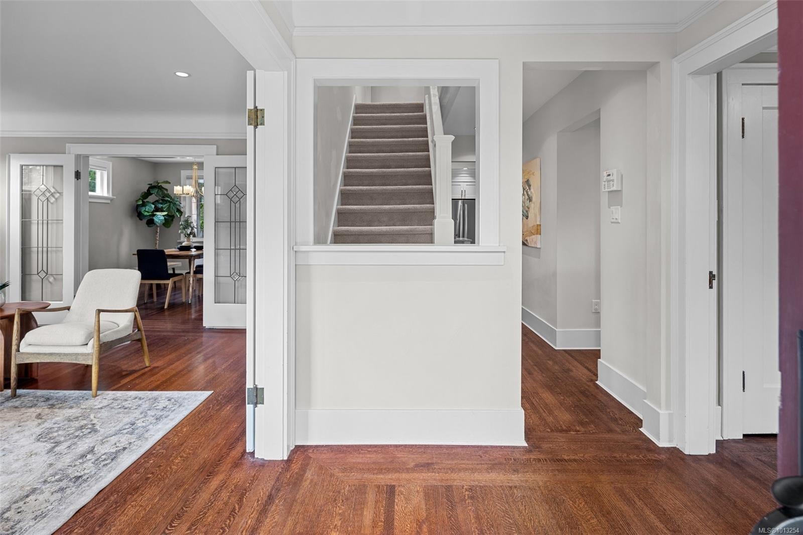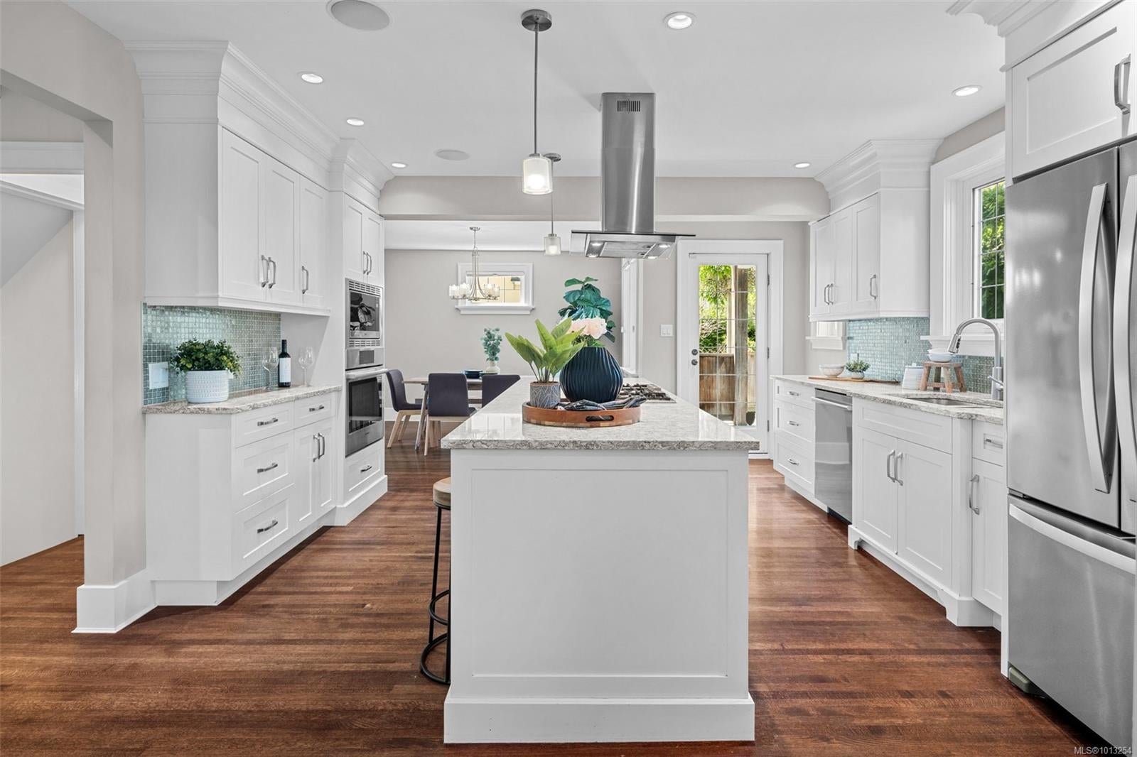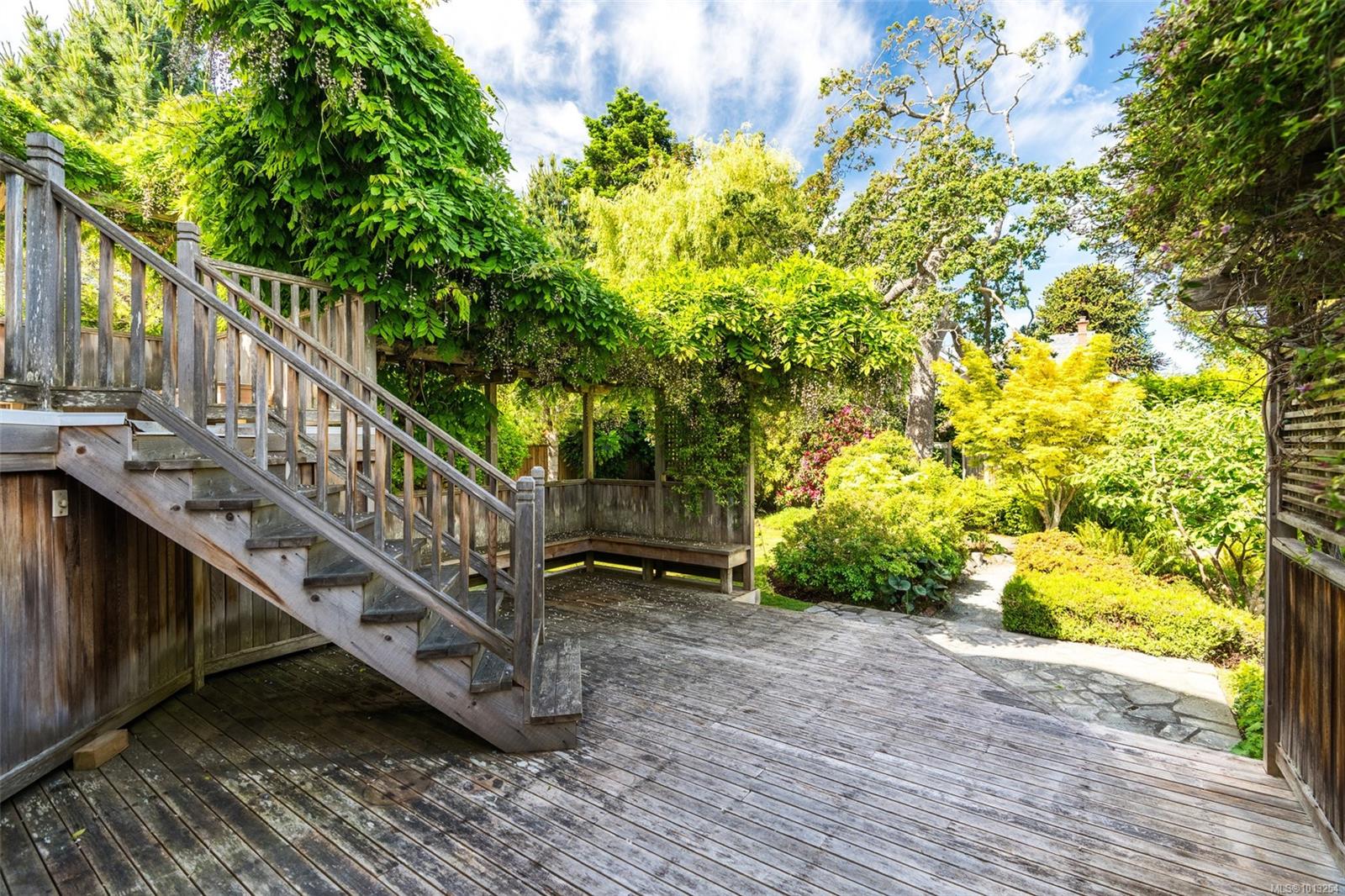 Welcome to an exceptional 1936 residence that captures the timeless grace of South Oak Bay living. Masterfully renovated in 2015 by Mike Knight Construction, offering thoughtful updates that families appreciate. Set on a sun-drenched and private 11,610 sq ft lot, the garden here is truly special: an established oasis of mature trees, curated plantings, and vibrant blooms that would take decades to recreate. It's the kind of backyard you dream about: west-facing, tranquil, and soaked in golden light from morning until evening. Inside, sunlight pours through windows on every side. Original details such as arched doorways, French doors, and wood floors pair beautifully with the home’s refined layout. The main level features a grand living room with a gas fireplace, an open-concept kitchen with a gas stove and stainless-steel appliances, and a family room that opens onto a west-facing deck for sunny afternoons and evening gatherings. A full bathroom and main floor bedroom offer flexibility for guests, a home office, or future accessibility. Upstairs, three bedrooms include a generous primary suite with dual closets and a luxurious ensuite featuring a walk-in shower, freestanding tub, and views over the garden. The lower level, with 7-foot ceilings, exterior access, and a roughed-in kitchen, provides versatility for multi-generational living, guests, or recreation space. Located on a quiet, tree-lined street a block from the ocean. Walk to top-ranked public and private schools, the Victoria Golf Club, Oak Bay Marina, charming cafés, and beaches. Every detail has been carefully considered to create a home that feels elegant, welcoming, and lasting. This rare property offers privacy, space, and a location that defines South Oak Bay living.