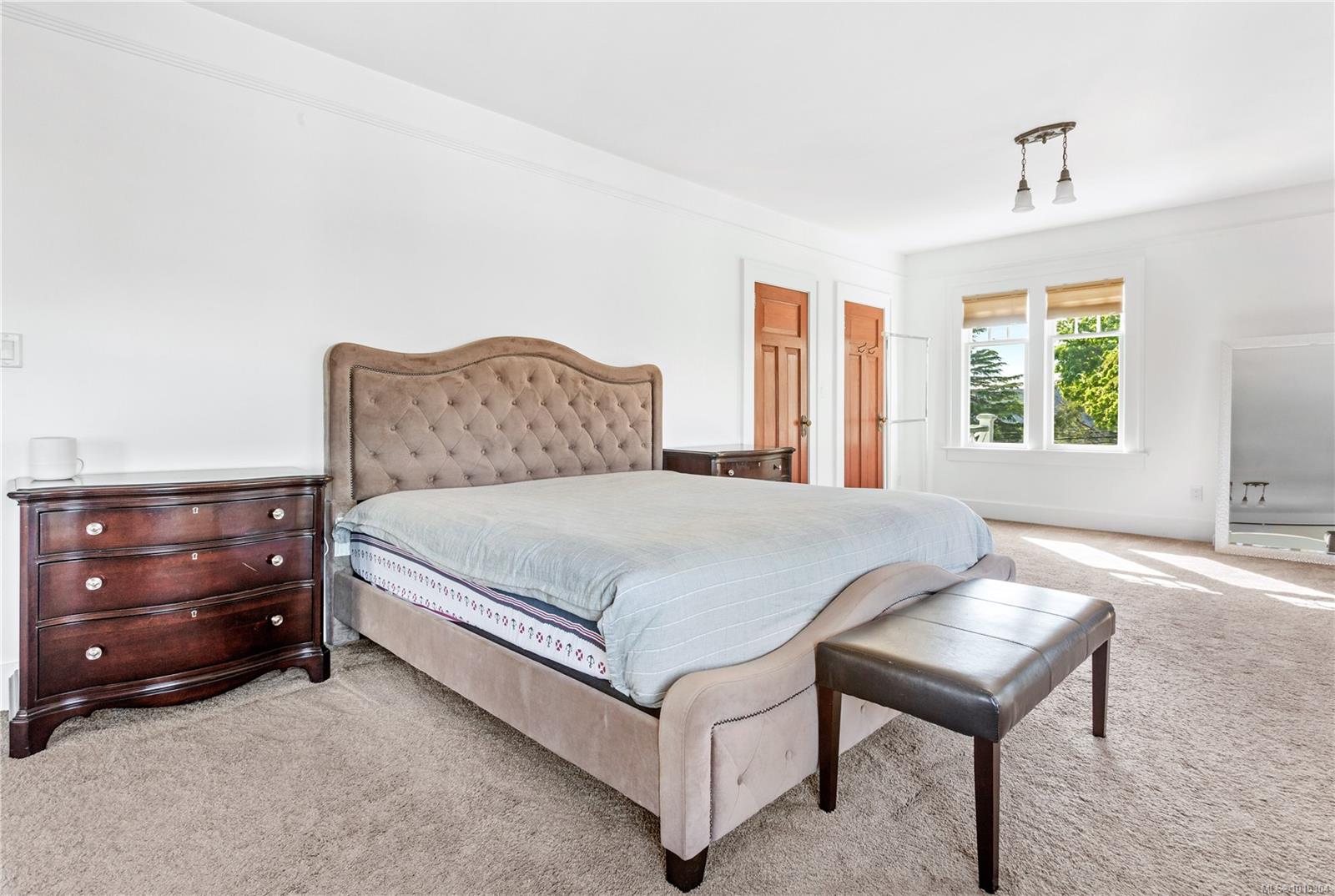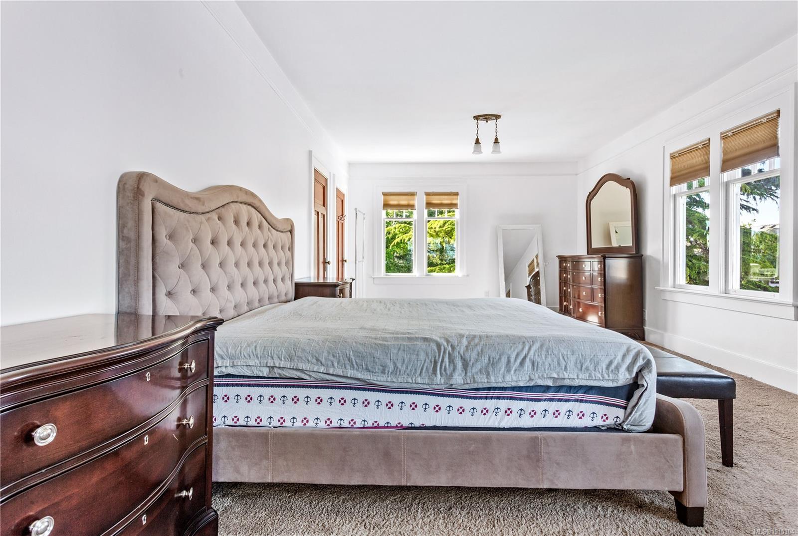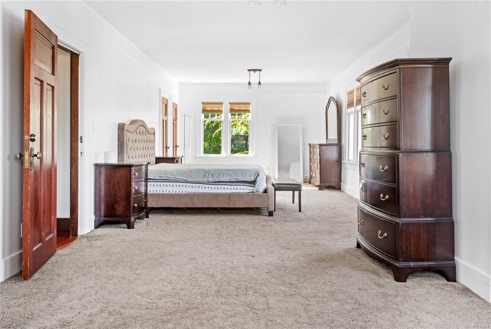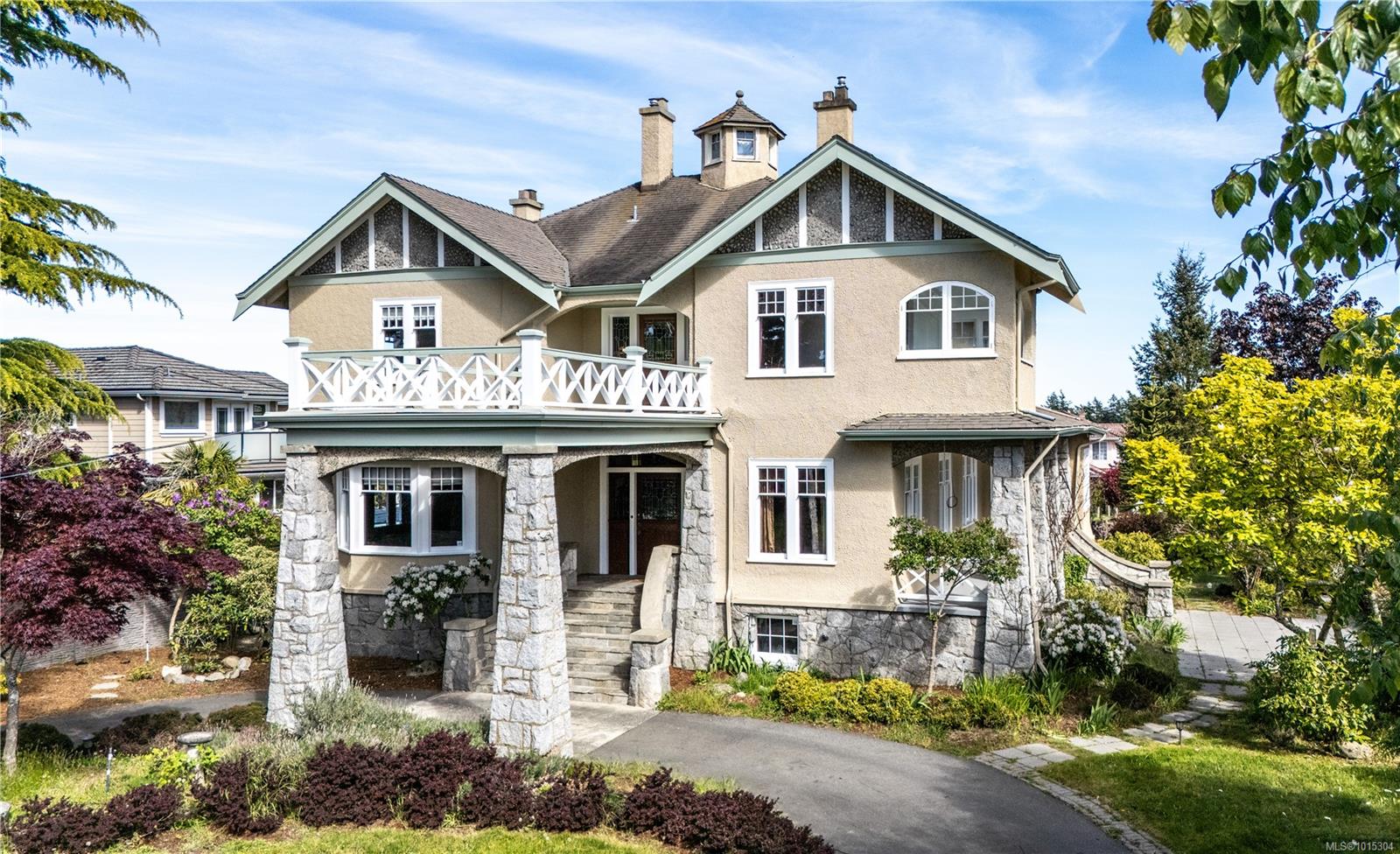Welcome to one of Gordon Head’s most iconic estates. Originally built in 1922 for Geoff & Maud Vantreight, this distinguished heritage home rests on nearly half an acre atop one of the neighbourhood’s highest points. Surrounded by mature landscaping and featuring both front and rear access, the property has been meticulously restored to preserve its timeless charm while introducing thoughtful interior and mechanical upgrades throughout. Inside, you’ll find 7 spacious bedrooms, 5 bathrooms, across three expansive levels, totaling over 5,000 sq. ft. The main floor is an entertainer’s dream with a bright, formal living room, a large dining room, and two kitchens, one ideal for everyday use and another for hosting. French doors lead to a stunning wrap-around south-facing veranda and patio, perfect for seamless indoor-outdoor living. Upstairs, the primary retreat stretches over 40 feet with a private sitting area, Ocean Views, walk-in closet, and a 5-piece ensuite featuring the original clawfoot tub. Three additional bedrooms, two full bathrooms, and a charming sleeping porch complete this level. The lower floor adds flexibility with two large flex rooms, abundant storage, and a self-contained 1-bedroom suite, ideal for extended family or rental income. Notable architectural features include the rooftop cupola, original granite fireplaces, classic millwork, and a porte-cochere entry. This is a rare opportunity to own a piece of Saanich history with space, style, and substance in one of Victoria’s most desirable neighbourhoods.