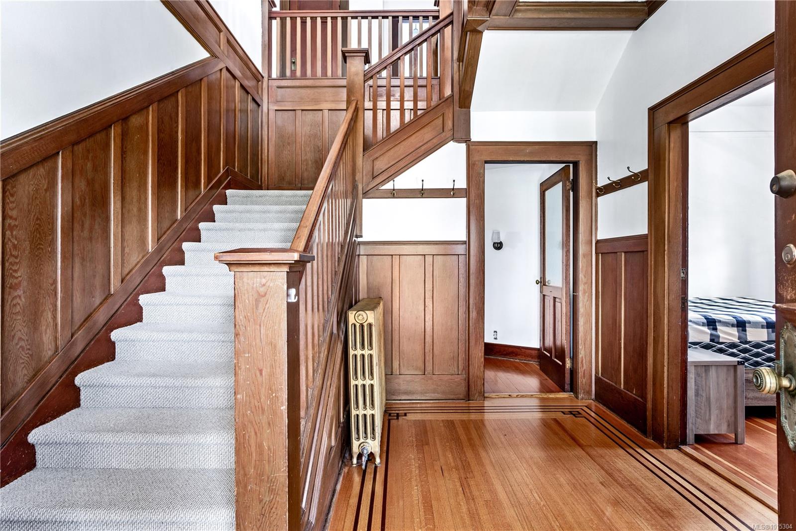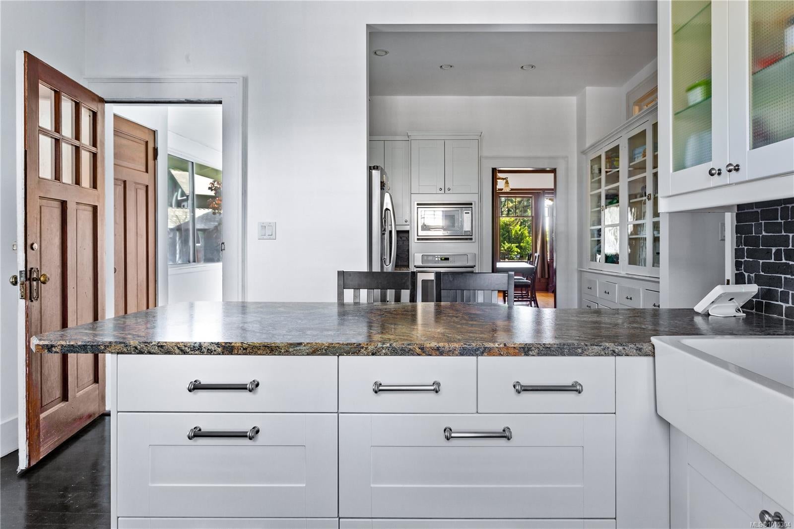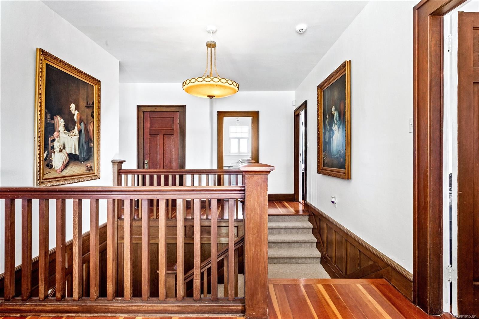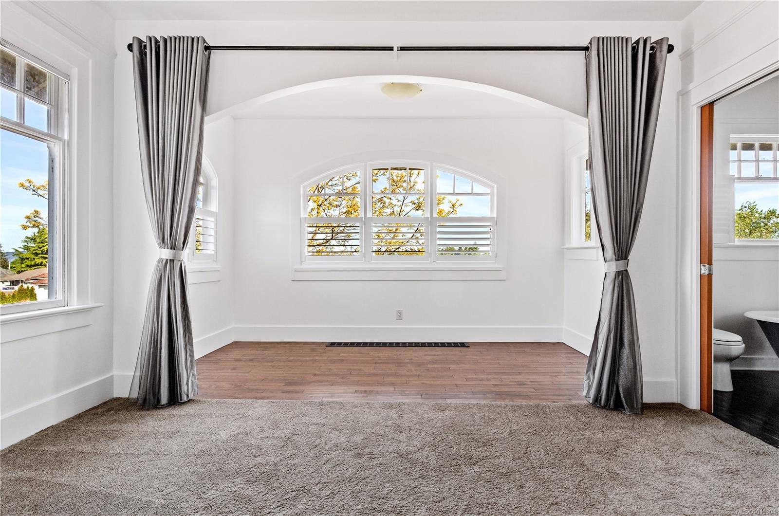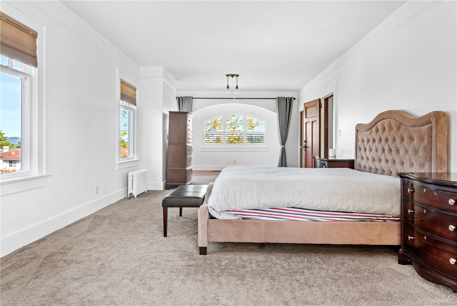 Welcome to one of Gordon Head’s most iconic estates. Originally built in 1922 for Geoff & Maud Vantreight, this distinguished heritage home rests on nearly half an acre atop one of the neighbourhood’s highest points. Surrounded by mature landscaping and featuring both front and rear access, the property has been meticulously restored to preserve its timeless charm while introducing thoughtful interior and mechanical upgrades throughout. Inside, you’ll find 7 spacious bedrooms, 5 bathrooms, across three expansive levels, totaling over 5,000 sq. ft. The main floor is an entertainer’s dream with a bright, formal living room, a large dining room, and two kitchens, one ideal for everyday use and another for hosting. French doors lead to a stunning wrap-around south-facing veranda and patio, perfect for seamless indoor-outdoor living. Upstairs, the primary retreat stretches over 40 feet with a private sitting area, Ocean Views, walk-in closet, and a 5-piece ensuite featuring the original clawfoot tub. Three additional bedrooms, two full bathrooms, and a charming sleeping porch complete this level. The lower floor adds flexibility with two large flex rooms, abundant storage, and a self-contained 1-bedroom suite, ideal for extended family or rental income. Notable architectural features include the rooftop cupola, original granite fireplaces, classic millwork, and a porte-cochere entry. This is a rare opportunity to own a piece of Saanich history with space, style, and substance in one of Victoria’s most desirable neighbourhoods.