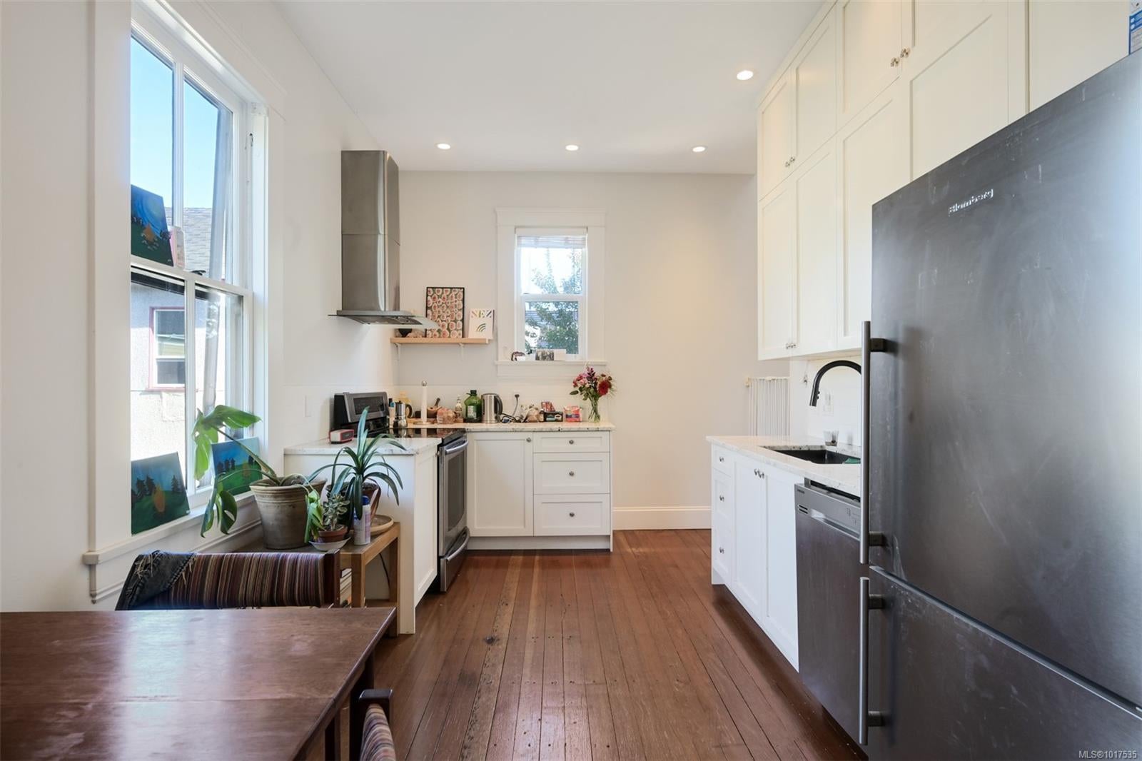 Set on a charming tree-lined street, 737 Vancouver Street is one of eight distinguished homes envisioned by architect John Teague for Hedley Chapman in 1892. Thoughtfully reimagined into four stylish rental suites, the home underwent a complete renovation in 2014, executed with precision and no detail overlooked with design by Ryan Hoyt. The timeless character remains, featuring exposed brick, fir flooring, and soaring ceilings that celebrate its heritage. Each private suite offers sound and fire separation, its own water and hydro meters, laundry, hot water tank, and storage locker. Expansive windows flood the interiors with natural light. Perfectly positioned only blocks from Cook Street Village and downtown, it provides easy access to shops, cafés, and amenities. A detached single-car garage adds further income possibilities. Designed for effortless ownership, this exceptional property offers the ideal balance of classic craftsmanship and modern refinement.