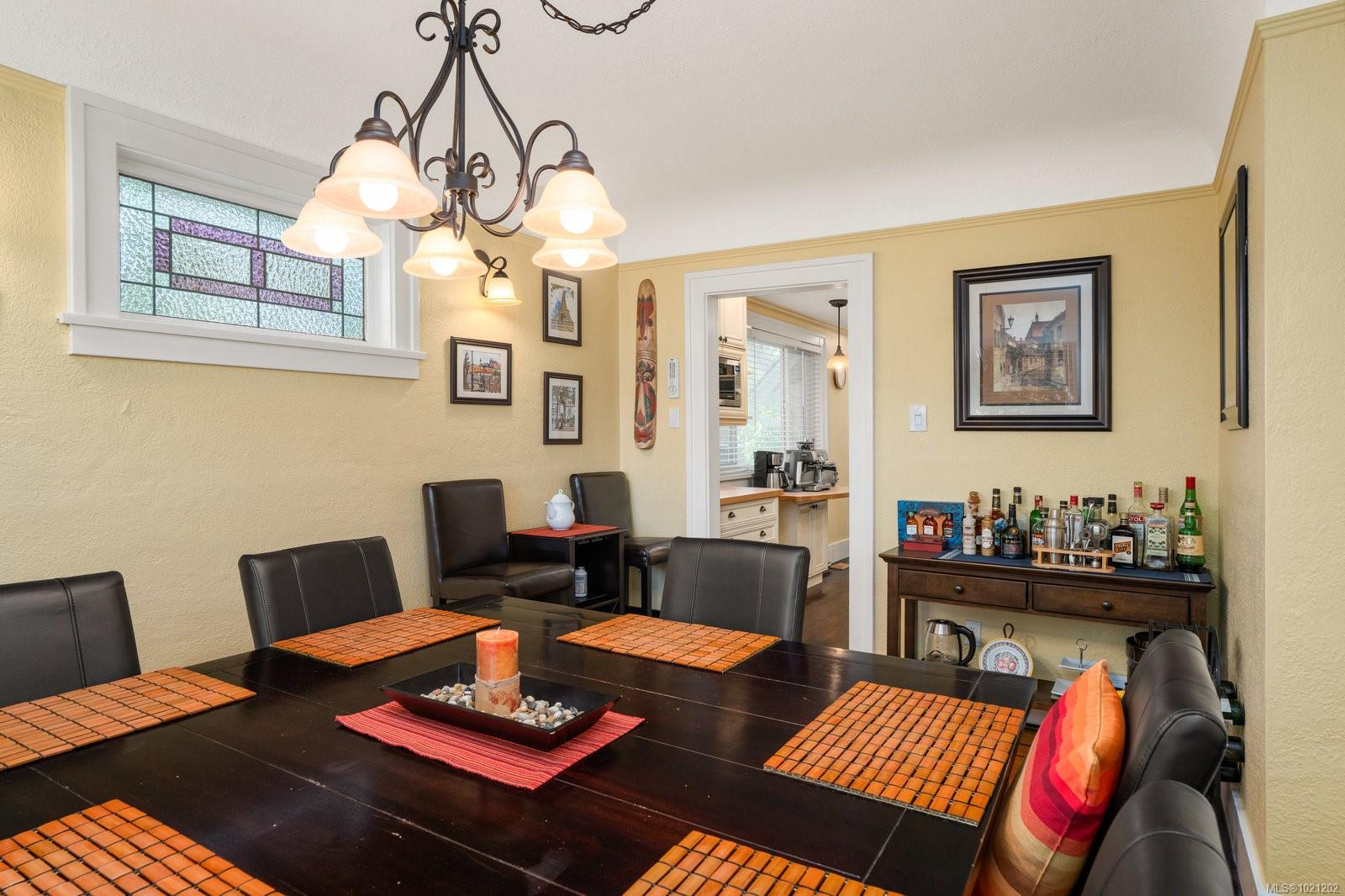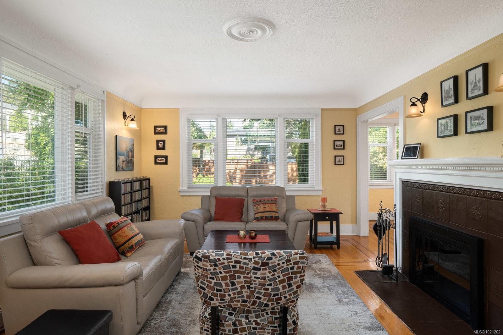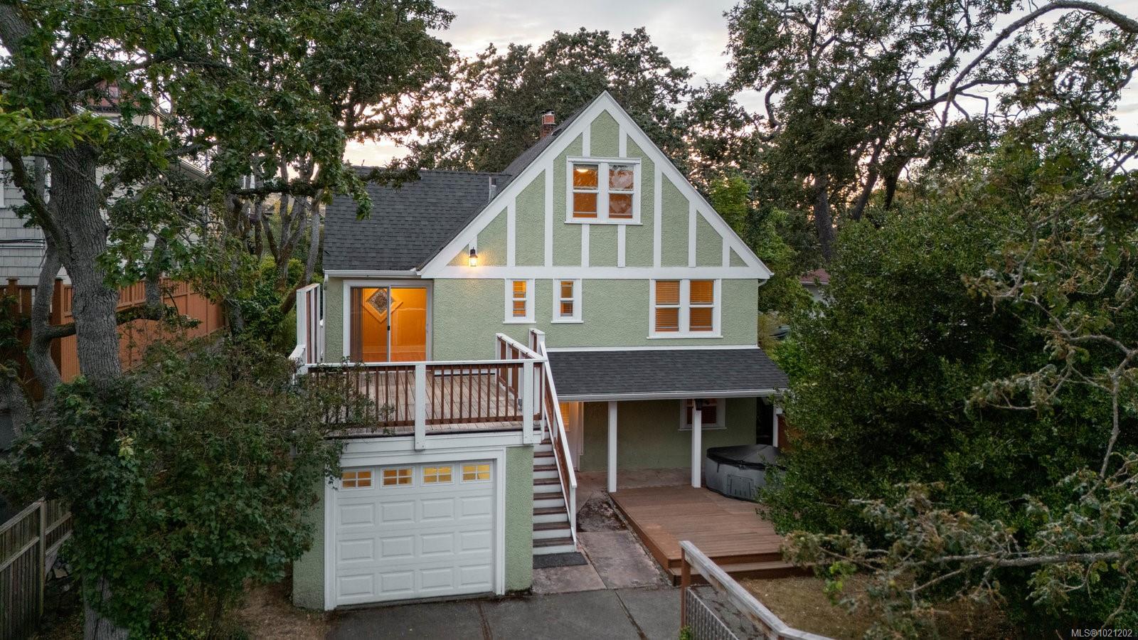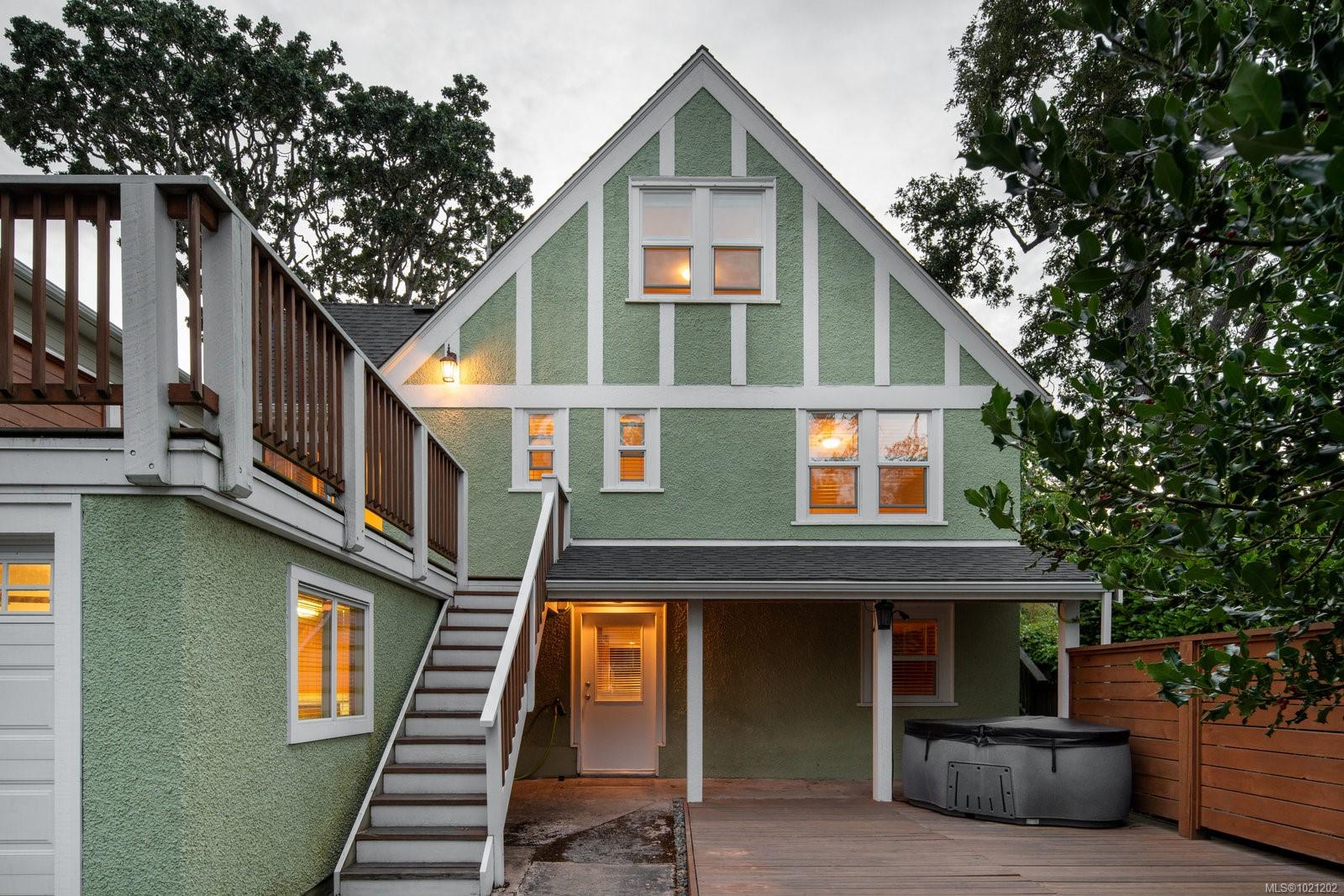 Welcome to 1959 Hampshire Road, a beautifully refurbished character home ideally situated in desirable Oak Bay. This spacious residence offers four bedrooms and two bathrooms within nearly 3,000 square feet of bright, inviting living space. Newly refinished rich oak floors with elegant mahogany inlays and stunning stained glass windows add timeless character throughout, complementing the generous living room centered around a cozy wood-burning fireplace. Enjoy a total of 529 square feet of outdoor space spread across three separate decks, perfect for relaxing or entertaining. Additional highlights include a sauna, a dedicated music room, an office with its own convenient separate entrance, a wood stove for supplemental heating, and abundant storage throughout. Modern upgrades such as enhanced electrical systems and a hot tub bring comfort and style to this exceptional home. A private electric gate provides access to a quiet laneway and the attached garage. Located just a few blocks from Willows Beach, Estevan Village, Oak Bay Village, and close to Willows Elementary and Oak Bay High School, this character-filled home perfectly blends timeless appeal with contemporary living.