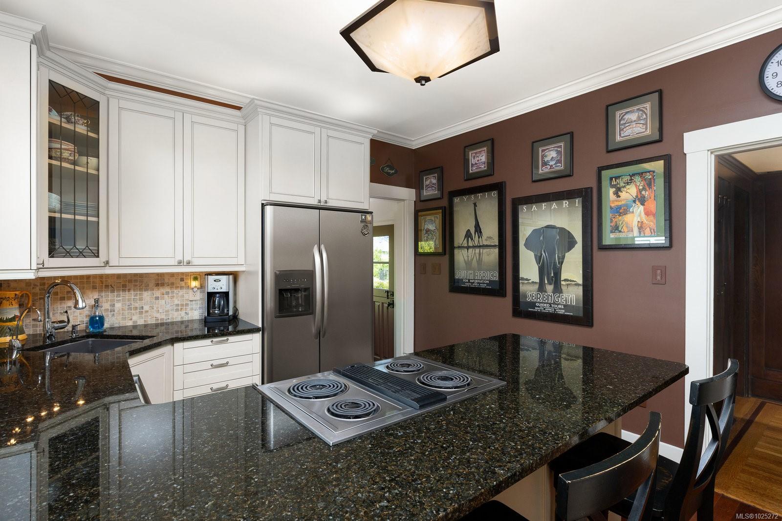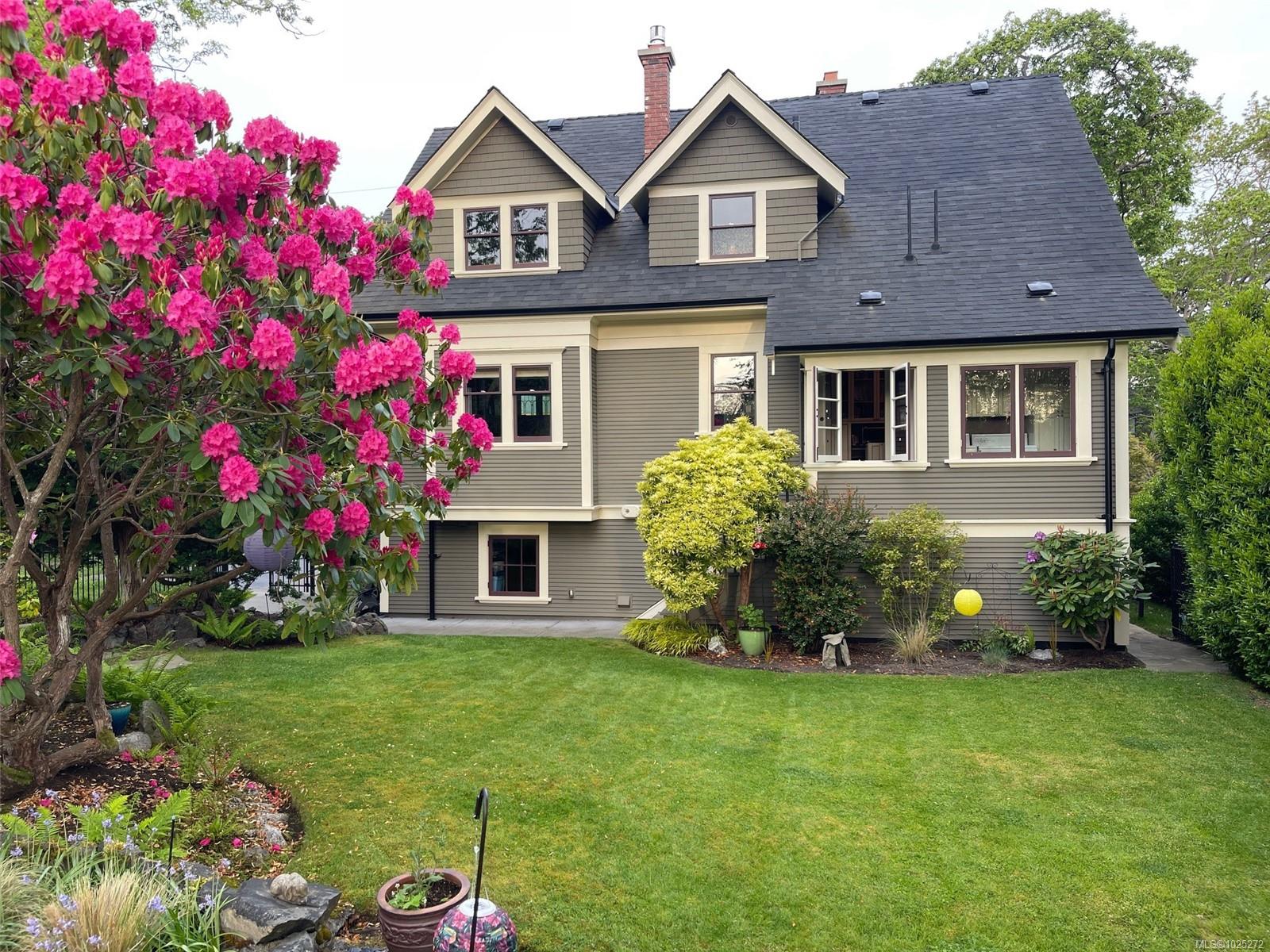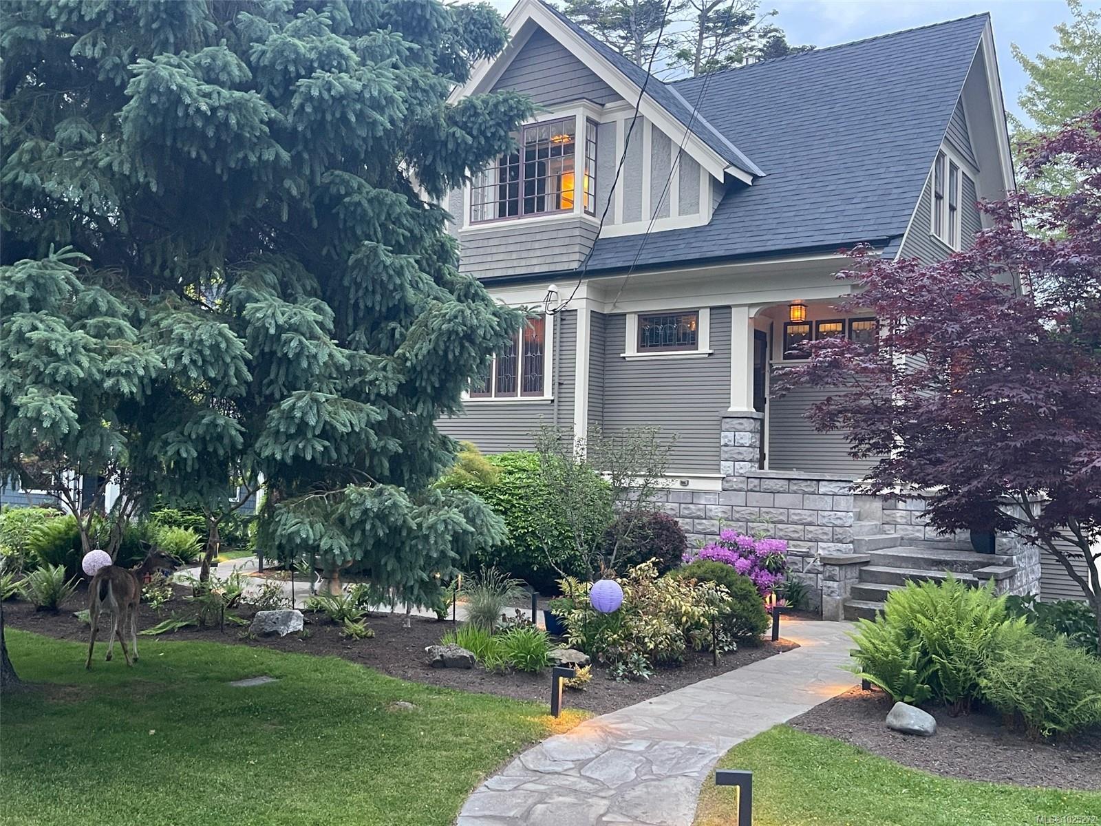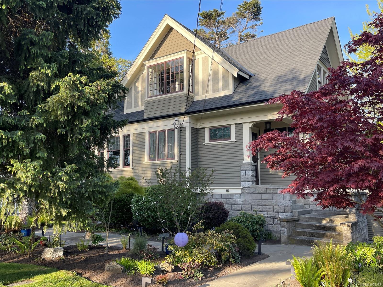 773 Island Road is one of those rare houses that people settle into and in which they can easily transition through life’s stages. With a time-tested three-floor plan, this 1912 Arts and Crafts home sits at the rise of the street on the corner of a treed right-of-way. A joyous house in a magical setting, it’s surrounded by greenery and irrigated low-maintenance gardens. A welcoming foyer offers access to a bright living room with gas fireplace and stained glass; it’s a warm room that easily hosts gatherings, yet offers quiet spaces. Hardwood floors carry you on through the foyer to a dine-in kitchen, serving meals and moments that inviting kitchens make possible. Off the kitchen, the dining room with its built-ins, fireplace, and fine details supports entertaining large groups, family meals, or having a contemplative moment at any part of the day. Through to the foyer and down the hallway, an office looks over the back garden. Past the kitchen, a laundry and mud room complete the first floor. Back through the kitchen, a fine stairway opens to the skilled work by Goodison Construction to fully upgrade the lower level with a wired media room and full bath in a layout that has been future-proofed to serve as a fourth bedroom, or a separate-entrance space for guests or caregivers. The finished attached garage and separate utility provide give easy access to key functions. The upper floor sees two bedrooms, a third bedroom or studio, and a central bath by Decora Tile. It’s a proven design that offers space for family needs, and easy access to attic storage space. New plumbing, electrical, heating, roof, rebuilt chimneys, and on-demand hot water reflect a home with affordable heating, electrical, and water services. On a quiet South Oak Bay street that continues to have its country-lane feel, 773 Island Road is a perfectly located, modernized house with spaces and nooks to suit changing mood and needs that is now ready for you to call “home."